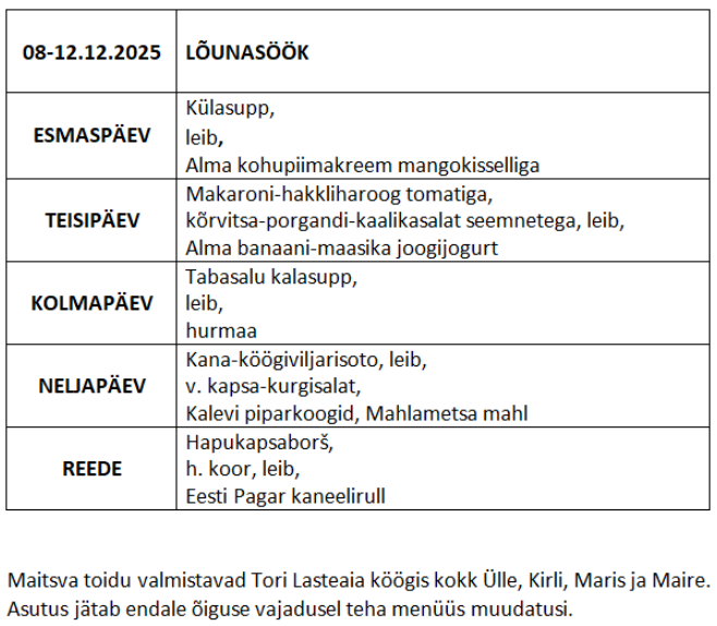Sellel õppeaastal ei ole meil võimekust pakkuda hommikuputru ja koolieinet. Palun kõigil hommikul kodus kõht täis süüa ja vajadusel väike amps koolikotti pista.