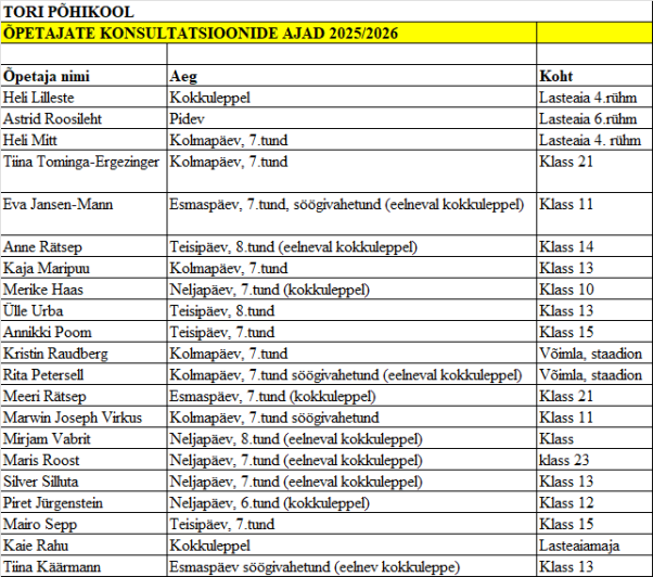 Õpetajate konsultatsiooni ajadlink opens on new page