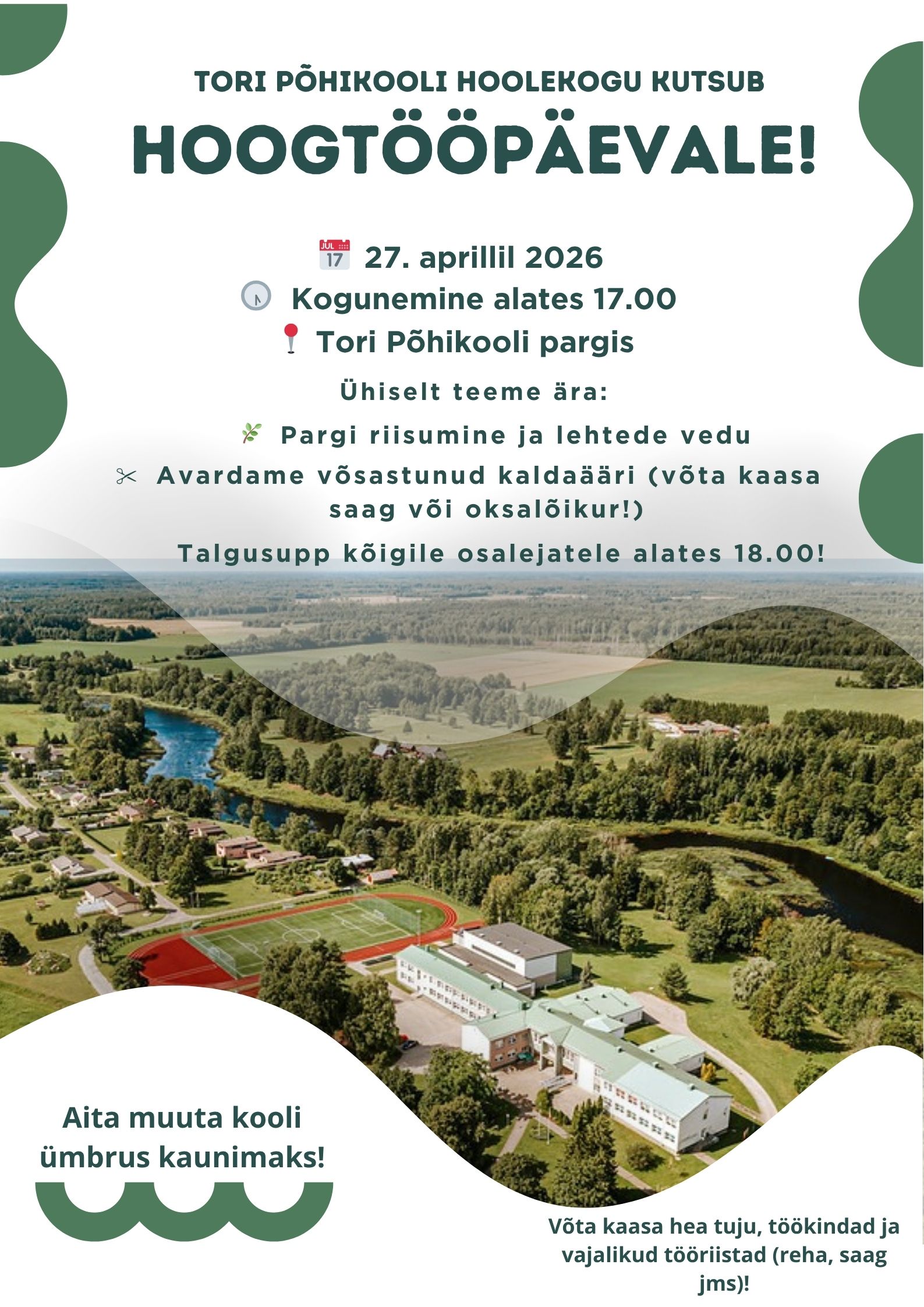 Tori kooli hoolekogu kutsub hoogtööpäevale.