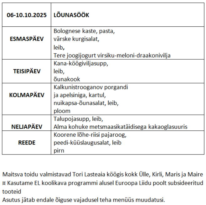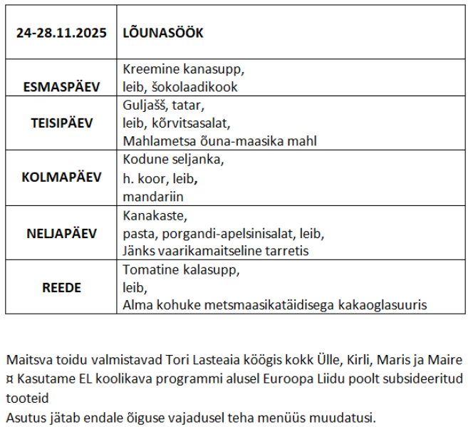 Sellel õppeaastal ei ole meil võimekust pakkuda hommikuputru ja koolieinet. Palun kõigil hommikul kodus kõht täis süüa ja vajadusel väike amps koolikotti pista.