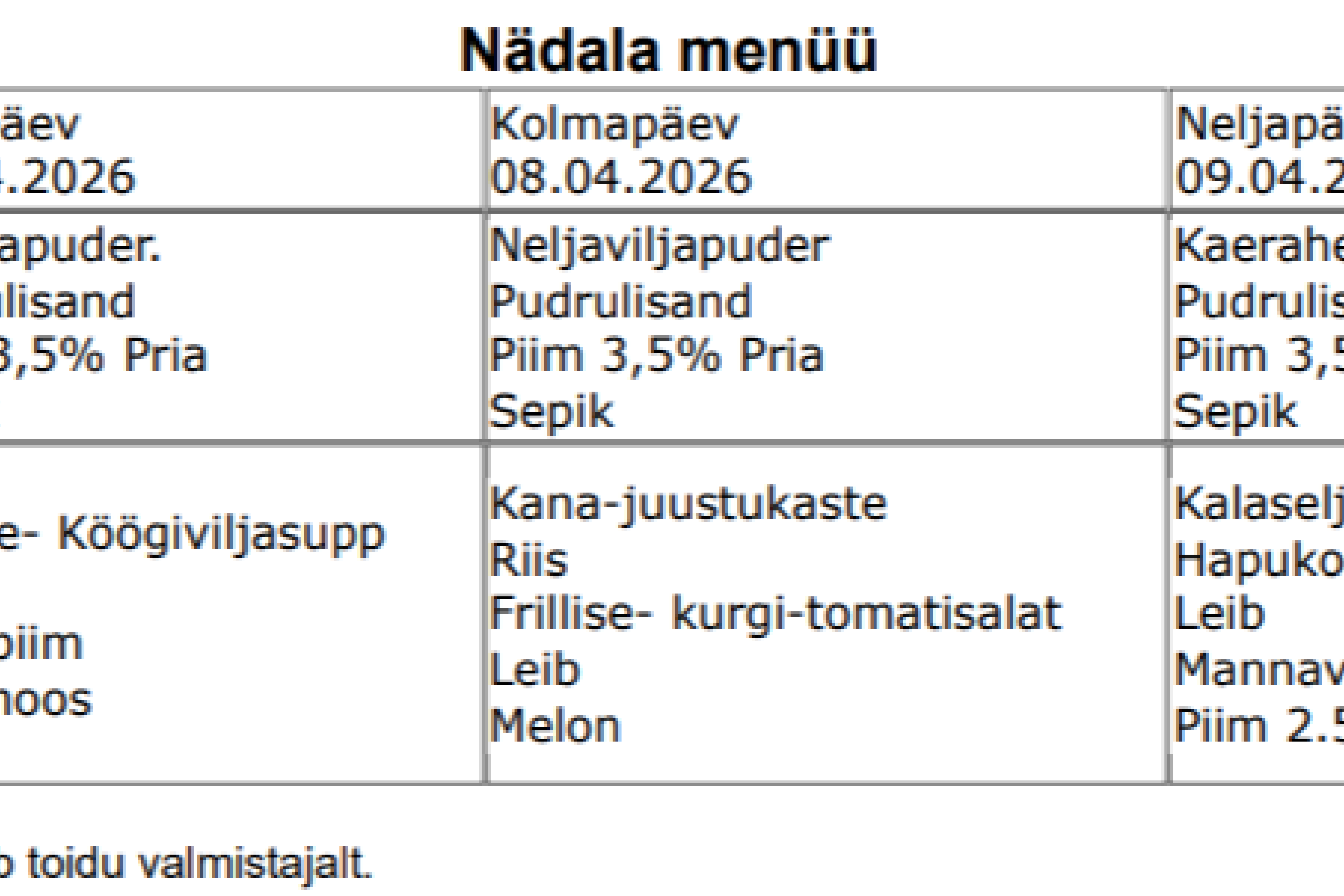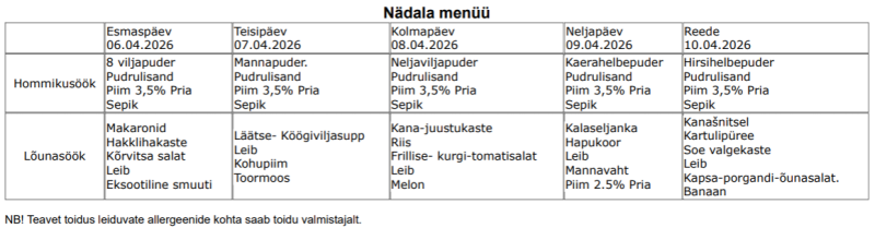 Sellel õppeaastal ei ole meil võimekust pakkuda koolieinet. Palun kõigil vajadusel väike amps koolikotti pista.