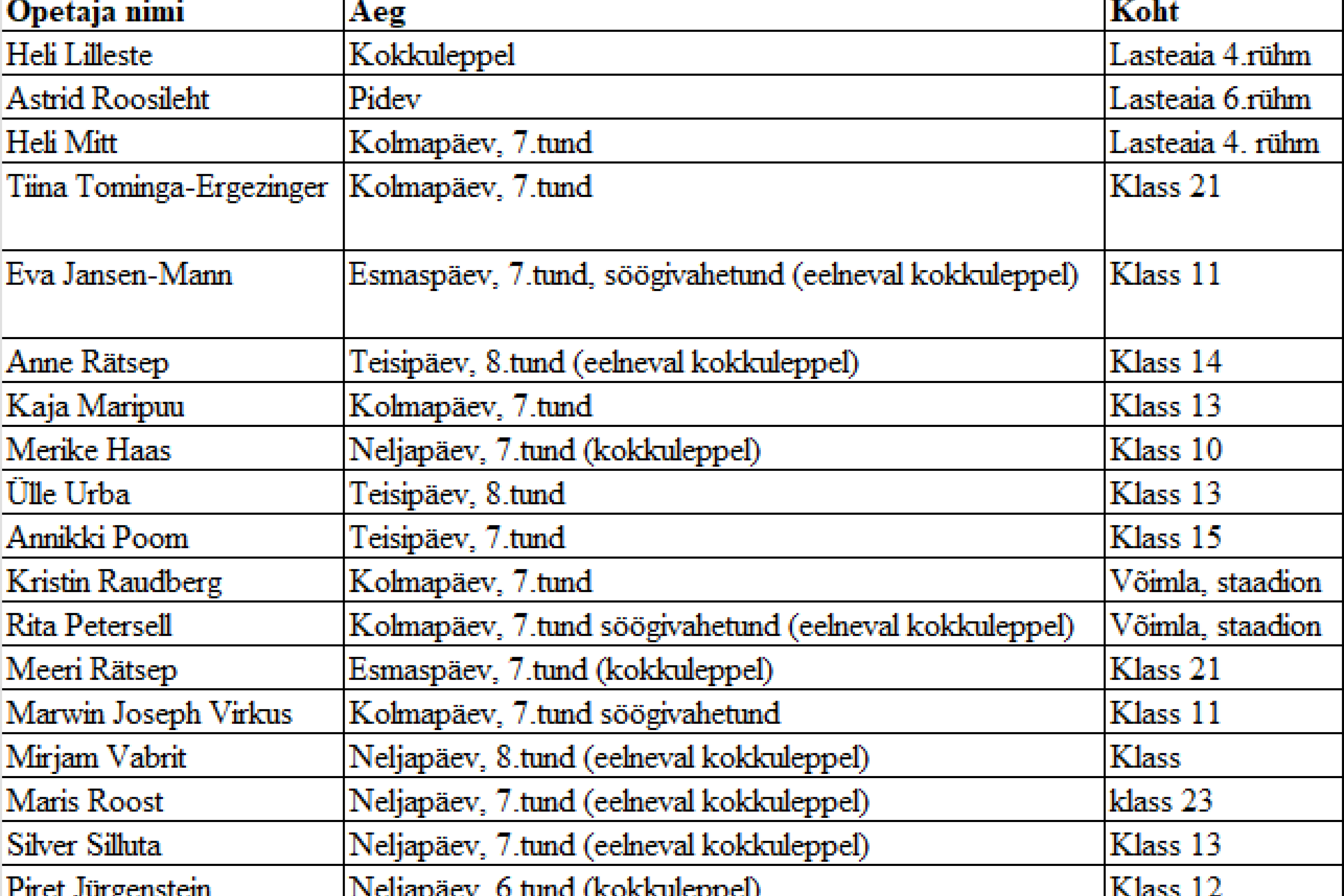 Õpetajate konsultatsiooni ajadlink opens on new page