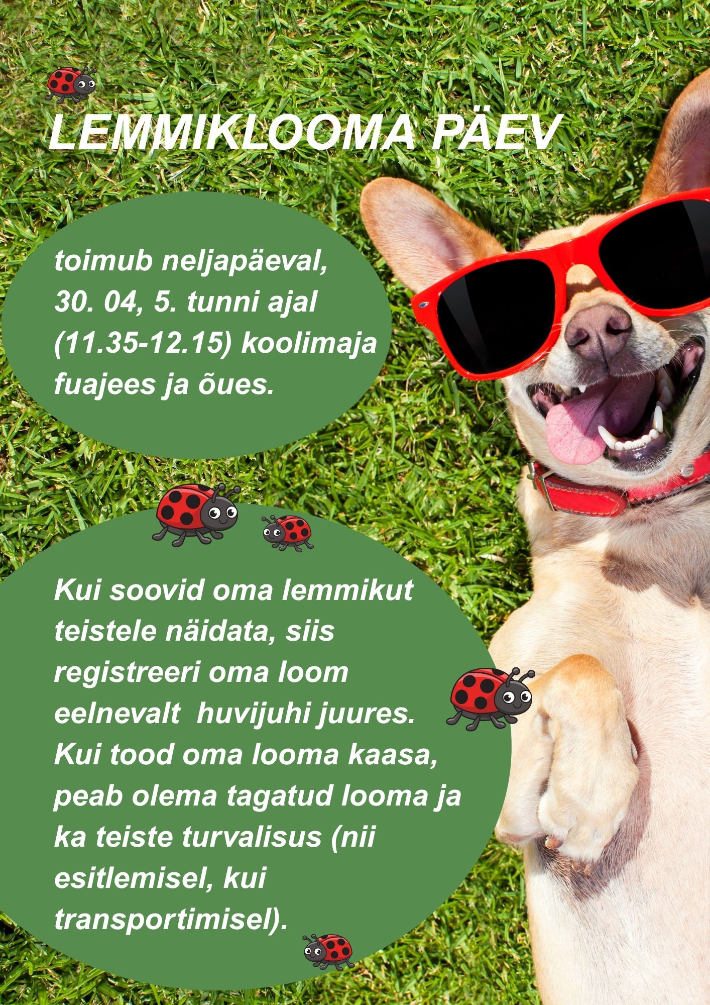 · 5. tunni ajal LEMMIKLOOMAPÄEV (huvijuht)