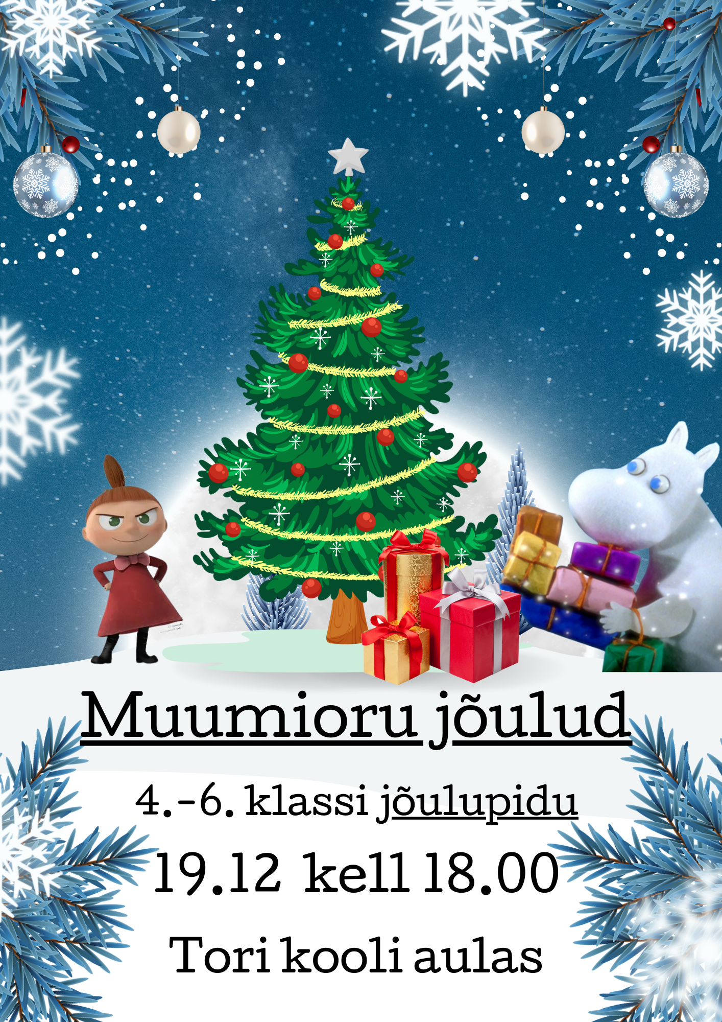 4.-6. klassi jõulupidu toimub esmaspäeval 19. detsember kell 18.00 kooli aulas.